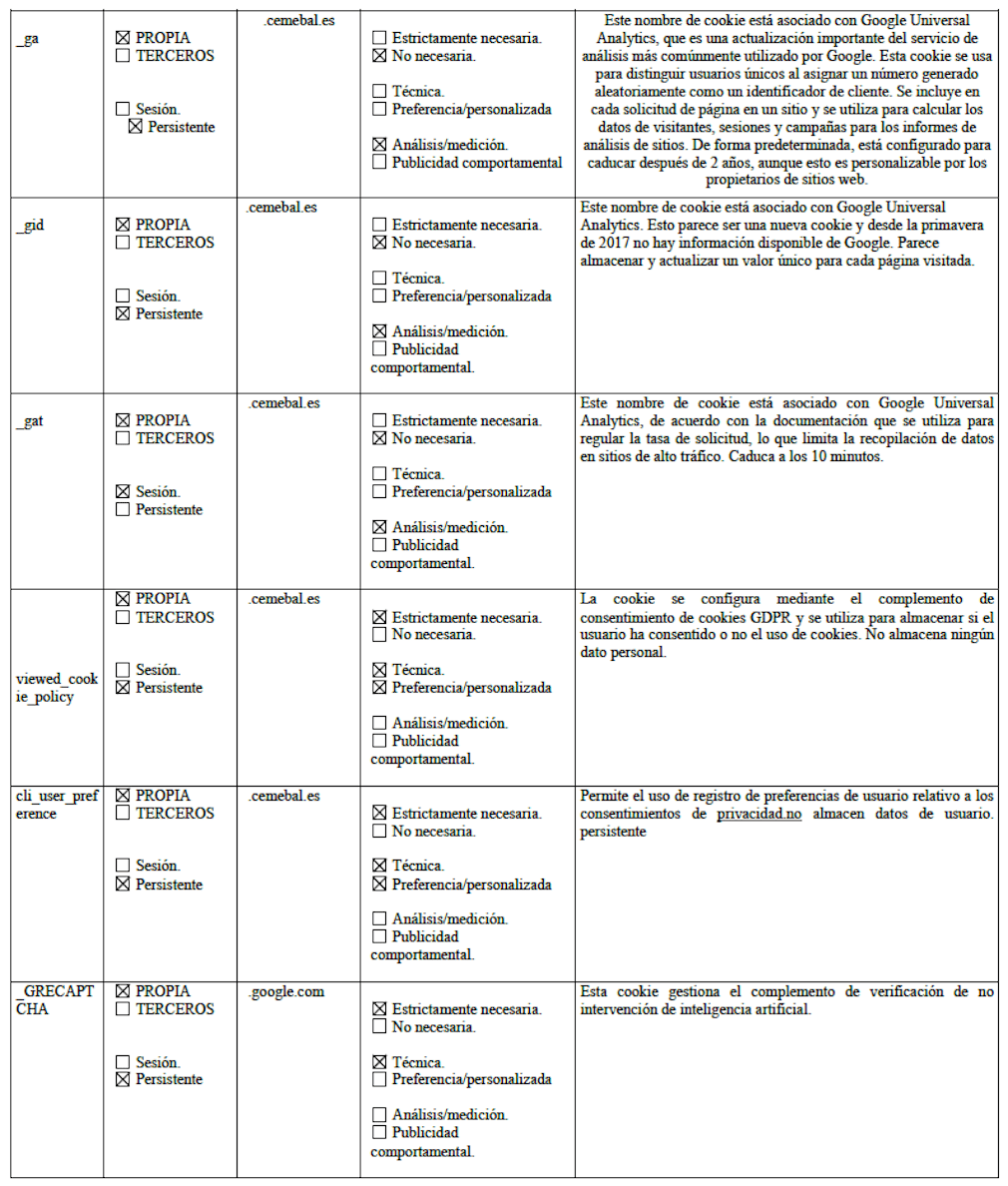 - El sitio web del que es titular la CEMEBAL contiene enlaces a sitios web de terceros, cuyas políticas de privacidad son ajenas a la de la CEMEBAL. Al acceder a tales sitios web usted puede decidir si acepta sus políticas de privacidad y de cookies. Con carácter general, si navega por internet usted puede aceptar o rechazar las cookies de terceros desde las opciones de configuración de su navegador.